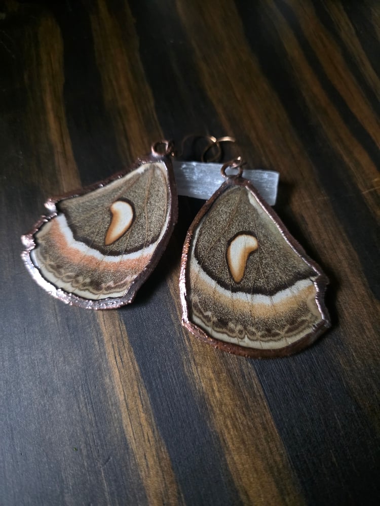 Real Moth wings sealed and framed in copper. These earrings are surprisingly light for their size.