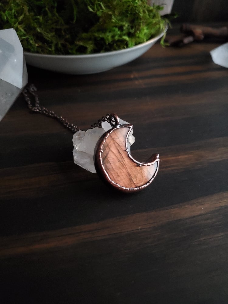 Flashy labradorite crescent.