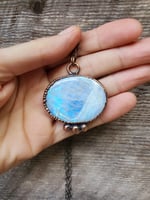 High quality rainbow moonstone with black tourmaline. A true rainbow and an ethereal blue flash.